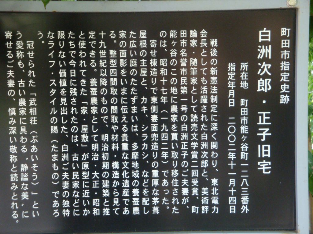 武相荘(ぶあいそう)とは、東京都町田市にある白洲次郎・正子夫妻の旧邸宅