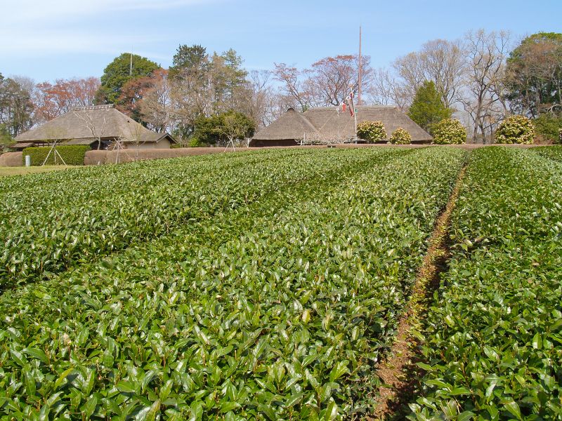 古河公方公園南側にある2軒の旧家、旧飛田家住宅、旧中山家住宅のさらに南には茶畑