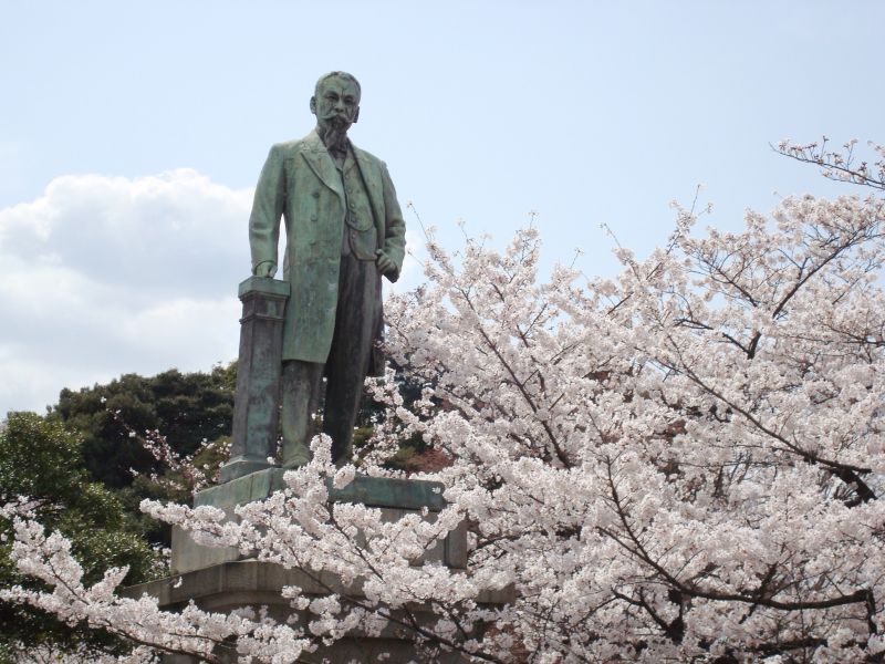 品川弥二郎の銅像。安政4年松下村塾で吉田松陰に学ぶ。